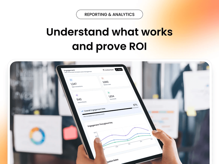 Track event performance with real-time dashboards, engagement metrics, and detailed reports. Prove ROI and optimize future events.