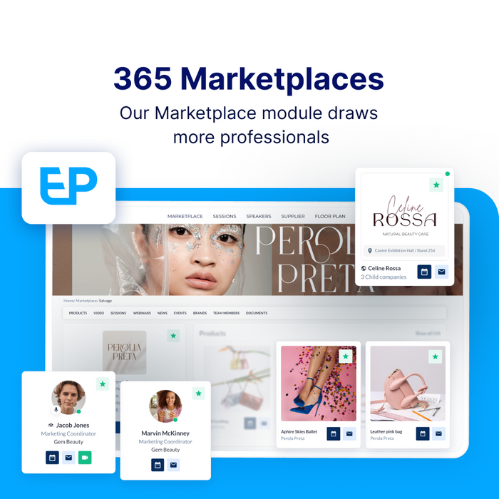 Our Marketplace module draws more professionals from search engines to your live show and drives engagement year-round by connecting buyers and sellers online.